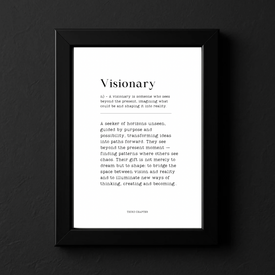 Visionaries see beyond what is, finding patterns where others see chaos and futures hidden within the ordinary. They are architects of possibility, bridging imagination and reality to shape what’s next. This piece celebrates their gift — the courage to see differently and build boldly.